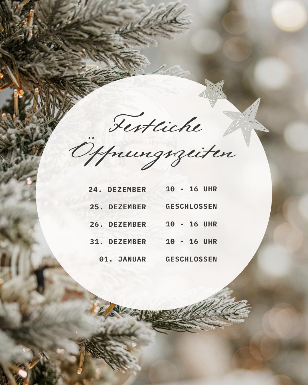 Öffnungszeiten über die Feiertage